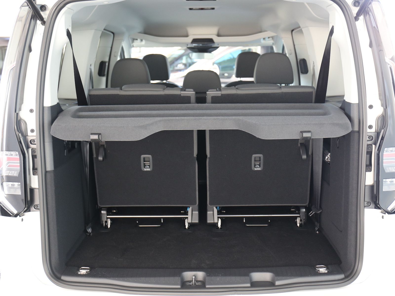 Sicherheitsgurte im Fahrgastraum, mit Gurtstraffern für die Außensitze in der 2. Sitzreihe